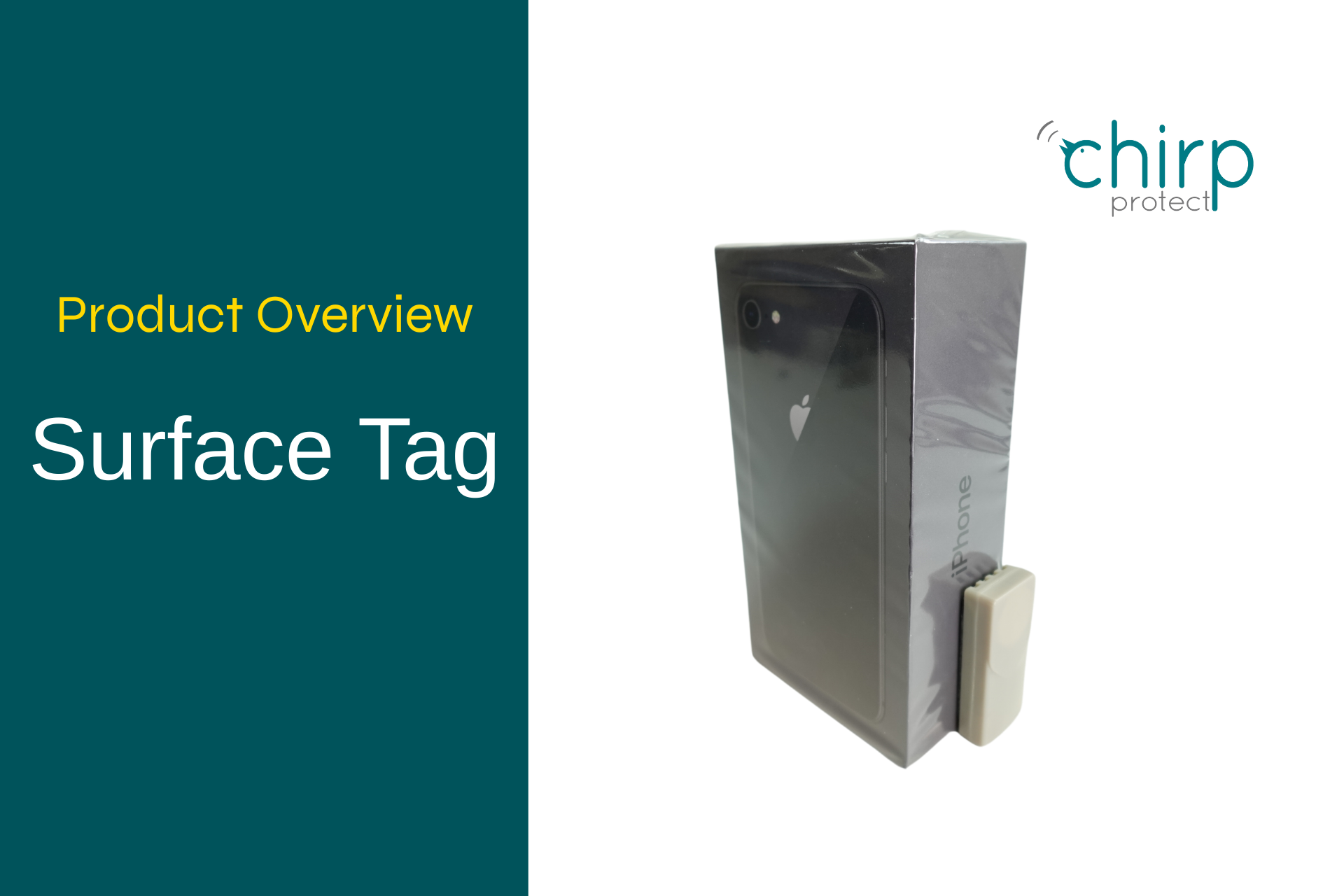 The Surface Tag is designed for products with a flat side, and features a built-in pressure switch that is depressed when the tag is secured in place. Like all Chirp Protect tags, it triggers an alarm if brought too close to the Chirp Protect Hub - but with added protection: it will also alarm instantly if forcibly removed from the product, acting as a strong deterrent against tampering and theft.