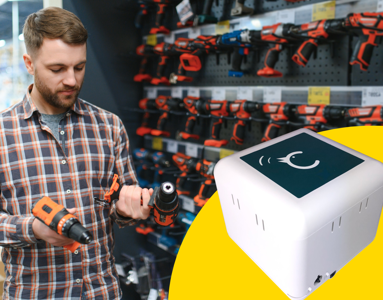 The Chirp-Zone Hub creates an invisible protection zone, letting customers handle high-value items freely, with an alarm triggered if the product is taken outside the area.